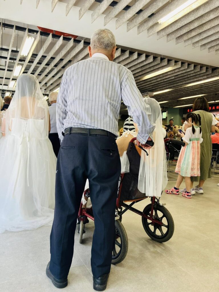 對許多長者來說,七夕其實只是個平凡的拜拜日;在她們的青春年代裡,婚禮並不像現在如此隆重,白紗禮服更是絕大多數人從未穿過的夢。因此,我們與在地夥伴攜手,決定為這些長者舉辦一場特別的活動—讓她們披上白紗,踏上紅毯。