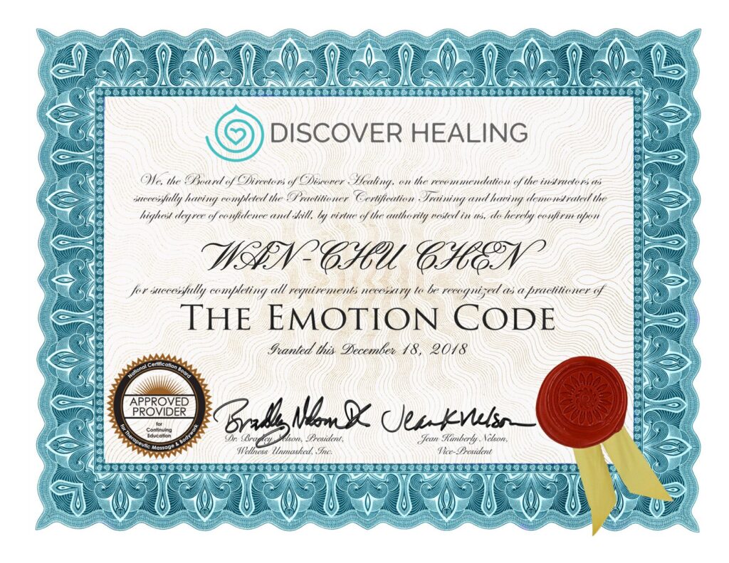 正是在這份愛的驅動下,我深入學習並通過認證,成為了 Emotion Code® (情緒密碼) 的療癒師,將這門技術從自我療癒的工具,轉化為服務世界的行動。
